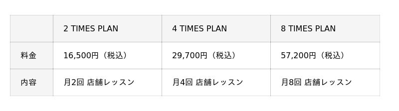 パーソナルレッスン料金