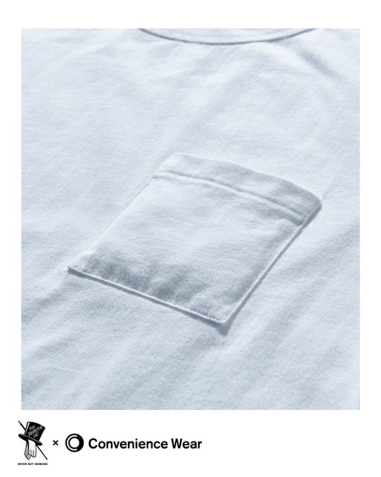 ポケットが一つ胸に付いただけでワークウェアになる。そうは思いませんか? 特にまだまだ暑さが続くこの時期に、パンツのポケットは携帯やら鍵やら一杯で、よく使う仕事道具なり嗜好品を胸のポケットに入れておけるだけでどれだけ便利なことか。それをどこにいても手に入れることができる、安くて誰でも買える高品質な商品として作る。このポケットTは、デニムやスラックス、スカート、何にでも合う万能選手。ジャストで、オーバーサイズで、好きに着こなしてもらえれば、作者としてこれ以上うれしいことはありません。