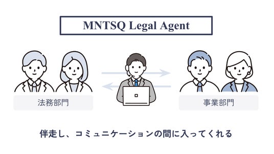 近年、AI技術の飛躍的な進化により、「人がAIを道具として使う」時代から「人とAIが共に働く」時代へと変化しています。この変化に対応するためには、AIに人間の仕事を深く理解させ、信頼できるパートナーへと育てていくことが重要です。そこで当社は、契約にまつわるあらゆる業務を理解し、大手法律事務所の専門的な知見も兼ね備えた『MNTSQ Legal Agent』を開発しました。『MNTSQ Legal Agent』は、まるで隣に優秀な法務部員がいるかのように、事業部から法務部まで組織を横断し、最適なコミュニケーションで業務を支援します。