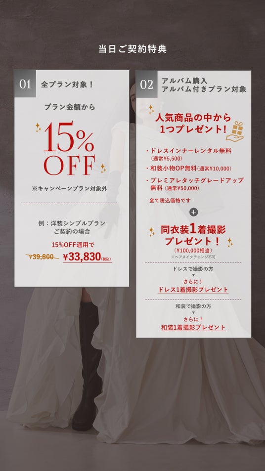 *洋装和装ライトプラン、エンゲージフォトプランは対象外