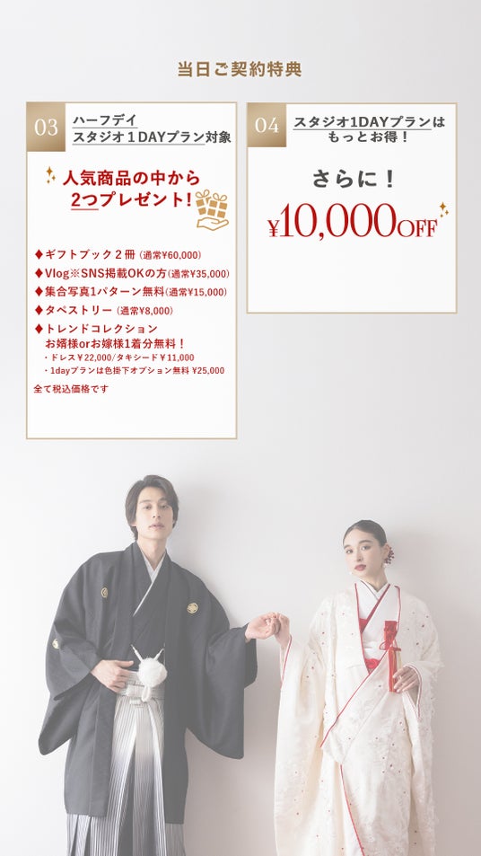 ・トレンドコレクション1着分無料(※スタジオ1DAYプランの場合は色掛下無料)