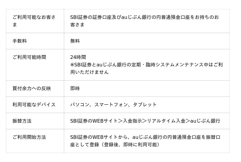 SBI証券で利用可能な「auじぶん銀行 リアルタイム入金」提供開始のお知らせ