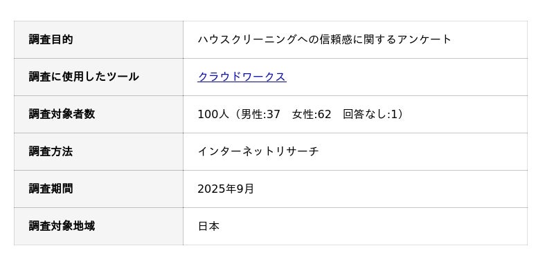 ハウスクリーニングへの信頼感に関するアンケート調査の概要