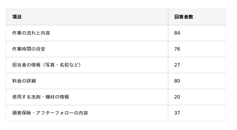 ハウスクリーニング業者選びで、信頼できると感じたポイントはどこですか?(複数回答可能)
