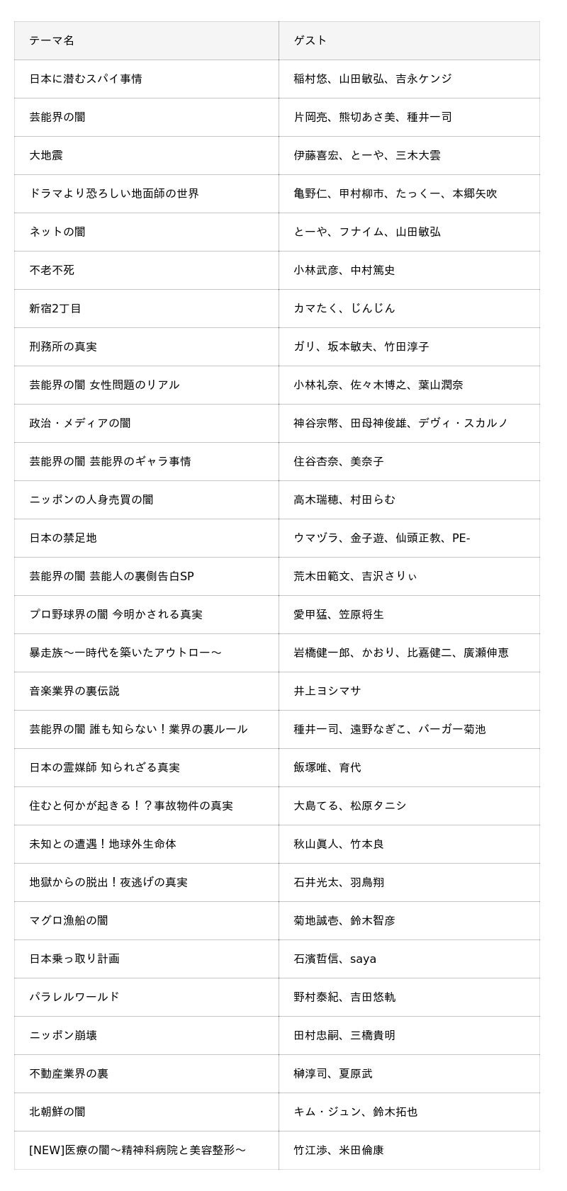 【配信中のテーマ・各回ゲスト】
