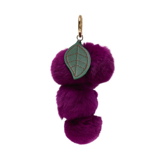 深みのあるパープルと、たわわに実る様子を表現した立体的なデザインが、大人の女性にも似合うエレガントな雰囲気を演出。リアルファーの柔らかな質感と相まって、バッグに高級感を添えます。