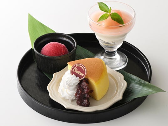 ・デザート盛り合わせ(台湾カステラ・白桃のパンナコッタ・カシスシャーベット)