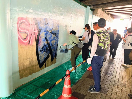 日本ペイント「HAPPY PAINT PROJECT」中野区の野方駅高架下で落書き消しと壁画制作に協力