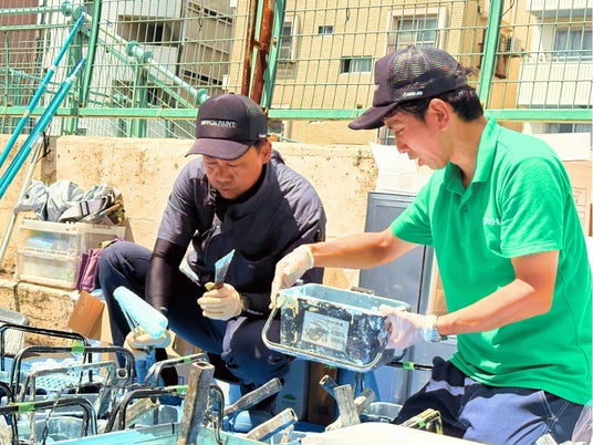 東京都塗装工業協同組合中野支部様、森商事(株)様とともに塗装準備を行いました