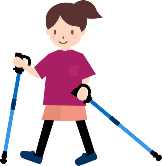 ポールウォーキングは、筋力アップや姿勢改善、フレイル予防(※)を目的とするエクササイズです。歩行時にストックで地面を突き推進力を得て、腕と脚をリズミカルに動かすことで全身運動ができます。ストックが体重を支えるので、膝や腰への負担が軽減され、年齢や体力を問わず筋力アップを目指せます。