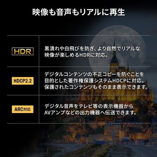 4K(4096×2160)60Hzの解像度に対応しており、美しく高精細なHDMI信号を出力できます。