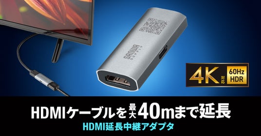 サンワサプライ株式会社(本社:岡山市北区田町1-10-1、代表取締役社長 山田和範)は、4K60Hzの高画質映像を最大40mまで安定して延長できるHDMI延長中継アダプタ「AD-HDR40」を発売しました。