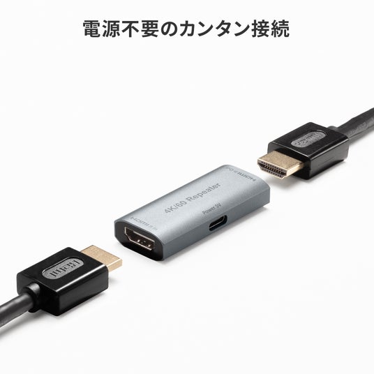 HDMIケーブル2本を中継し、最大40mまで延長できる