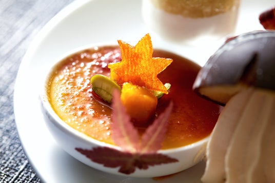 クリーミーな南瓜のブリュレと、表面のカリッと香ばしいカラメル層のコントラストが魅力。
