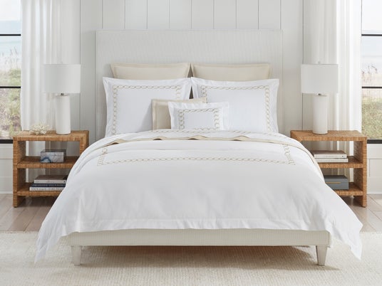 イタリアの熟練職人によって織り上げられたパーケール生地に、2列のサテンステッチが施されたデザインのグランデホテルコレクションはSFERRAのベストセラーです。ご自宅をまさに5つ星ホテルのように、洗練された風格で満たします。