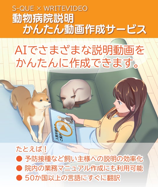 また、AIを使って動物病院向け説明動画を簡単に作成し管理することができる「動物病院説明かんたん動画作成サービス」の操作体験も行なっておりますので、お気軽にスタッフまでお声がけください。