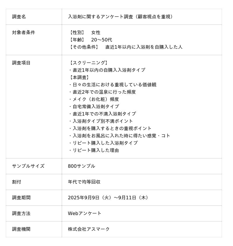 なお本調査では、直近1年以内にご自身で入浴剤を購入した20~50代の女性に聴取しております。