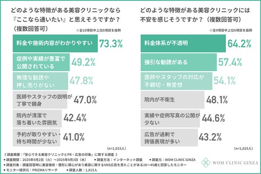 WOM CLINIC GINZA(所在地:東京都中央区、理事長:深堀 純也)は、美容施術・整形に関心があり美容に関するSNS広告を見たことがある18~45歳の方を対象に、「安心できる美容クリニックとPR・広告の印象」に関する調査を行いました。