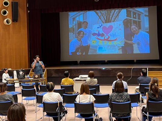 今年8月には、三次市の小中学校や保育所に勤務する瀬尾駿介教諭と金子真代教諭がなかよし学園のメンバーとしてルワンダを訪問。児童・生徒が自ら作成した教材を用い、現地で授業を実施しました。当日の講演では両教諭が現地の教育支援の様子を臨場感あふれる言葉で紹介し、「世界と自分がつながっている」ことを参加者全員が体感しました。