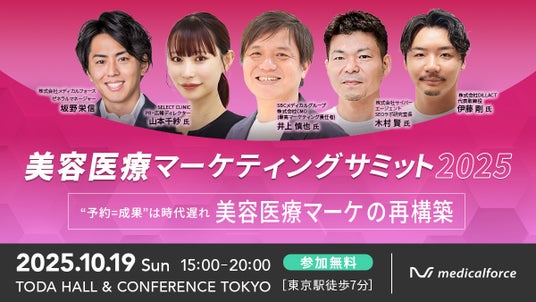 美容クリニック向けのオールインワンSaaS「medicalforce」ならびに「マーケティング・ブランディング支援サービス」を提供する株式会社メディカルフォース(所在地:東京都品川区、代表取締役CEO:畠中 翔一)は、美容医療のマーケティング領域にフォーカスした業界特化型オフラインイベント「美容医療マーケティングサミット2025」を、2025年10月19日(日)にTODA HALL & CONFERENCE TOKYOにて開催いたします。