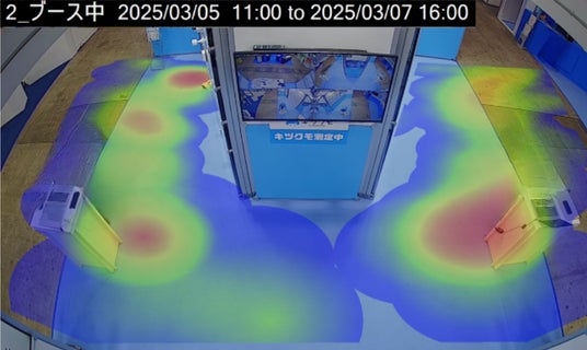 さらに、ブース左側にカメラとドアベルを8台展示していたエリアについても、ヒートマップ上で色が濃くなっていることから、多くの来場者が足を止め、製品に注目している様子が伺えます。