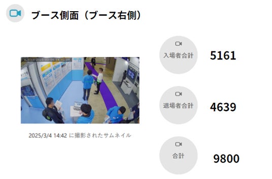 ブース内ではキヅクモカメラを設置し、キヅクモのマーケティング機能である「人数カウント」と「ヒートマッピング」を用いて4日間の来場者数を計測しました。来場者の皆様からは「防犯対策と並行して、マーケティングデータが取れるのが良い」とポジティブな意見を多くいただきました。