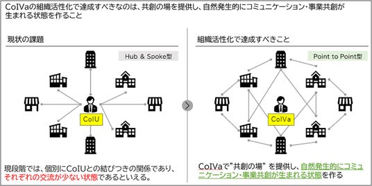 ※CoIVaで「共創の場」を提供し、自然発生的にコミュニケーション・事業共創が生まれる状態を作る。