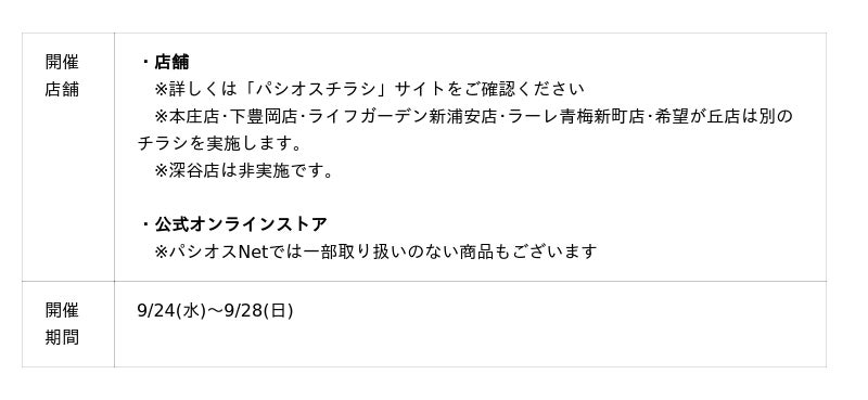 公式オンラインストア パシオスNetでは新規会員登録でのクーポンプレゼントや店舗受取サービスなど、様々な特典をご用意しております。(https://www.paseos-net.com/)