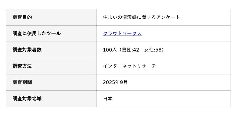 住まいの清潔感に関するアンケート調査の概要