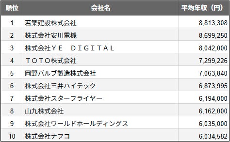 【2025年最新版】北九州市:上場企業平均年収ランキングTOP10/SalesNow DBレポート