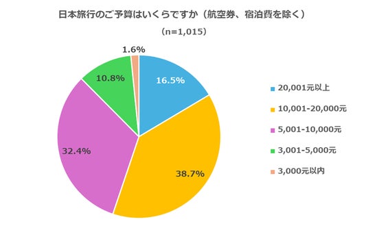 - 日本旅行の予算(航空券、宿泊費を除く)、「10,001元(約21万円)以上」は減少傾向に。