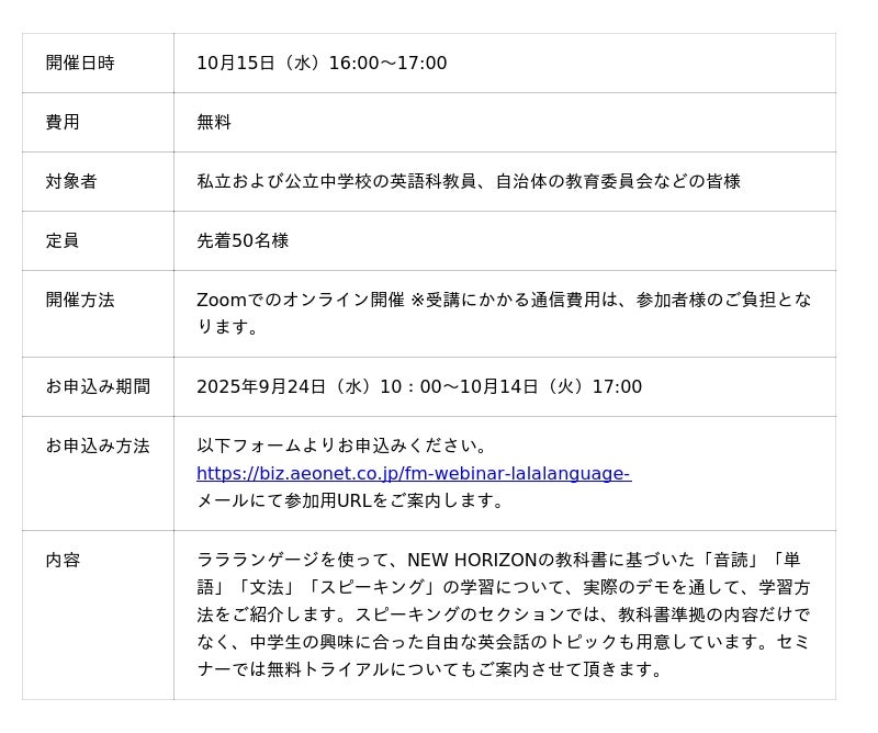 株式会社イーオン、学校・教育関係者、自治体教育委員会の方を対象に中学生用AI英会話学習サービス「ララランゲージ」説明会開催