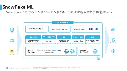 AIエージェントやMCP(Model Context Protocol)は2025年のホットトピックの一つです。本セッションでは、Snowflake合同会社 Senior Applied Field Engineer, AI/ML Specialistの高田 雅人が登壇し、Snowparkコンテナサービスを利用したSnowflake内での各種MCPサーバの実装・運用方法について、デモンストレーションと併せて説明しました。