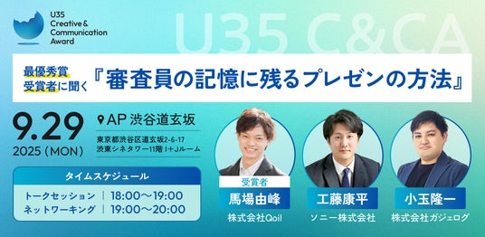 特別イベントは、35歳以下のビジネスパーソンを対象とするクリエイティブアワード『U35 Creative & Communication Award(以下、U35 C&CA)』の本年度の開催に伴い実施されるものです。特別イベントのテーマは「最優秀賞受賞者に聞く『審査員の記憶に残るプレゼンの方法』」。馬場は昨年度の最優秀賞受賞者として、企画が出来上がるまでのプロセスや企画書づくりのポイント、普段から意識して実行しているプレゼン術などを幅広くお話しする予定です。多くの方のご来場をお待ちしています。