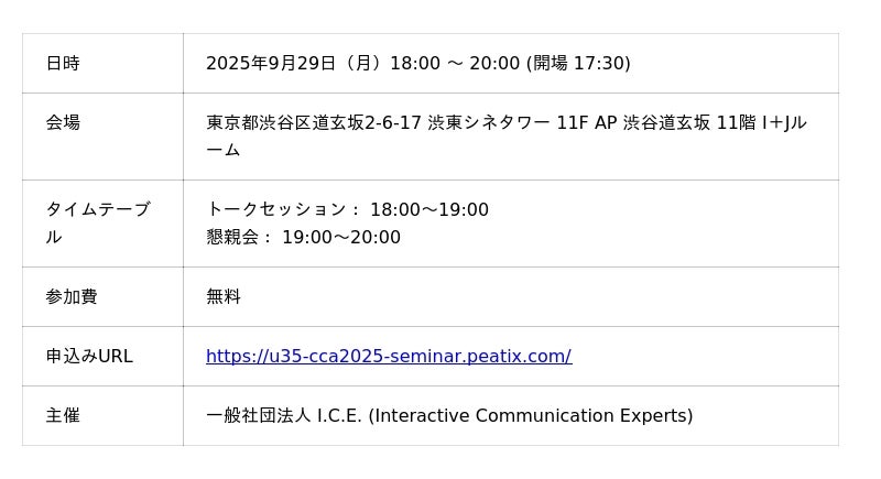 株式会社アイリッジ(本社:東京都港区、代表取締役社長:小田 健太郎、東京証券取引所グロース:3917、以下「アイリッジ」)の連結子会社でマーケティングに関するコミュニケーションデザイン事業を展開する株式会社Qoil(本社:東京都港区、代表取締役社長:山下 紘史、以下「Qoil」)は、一般社団法人 Interactive Communication Experts(略称:I.C.E.、呼称:アイス)主催のもと、2025年9月29日に開催される『U35 Creative & Communication Award』特別イベントに、Qoilのコミュニケーションプランナーの馬場 由峰が登壇することをお知らせします。