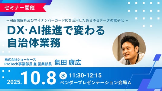 企業と顧客をつなぐDXクラウドサービスを展開する株式会社ショーケース(東京都港区、代表取締役社長:平野井順一、証券コード:3909、以下ショーケース)は、2025年10月8日(水)~9日(木)に幕張メッセで開催されるイベント「地方自治情報化推進フェア2025」に出展いたします。また、10月8日(水)には当社の氣田が登壇し、自治体業務におけるDX・AI推進の具体的な取り組みについて講演いたします。