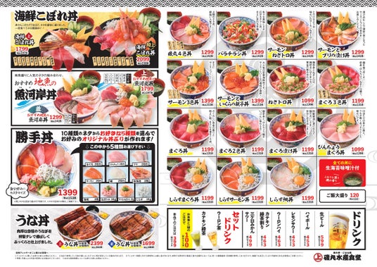 鮪赤身・鯛・サーモン・ブリ・煮穴子・海老・いくら・ねぎトロ・しらす・玉子