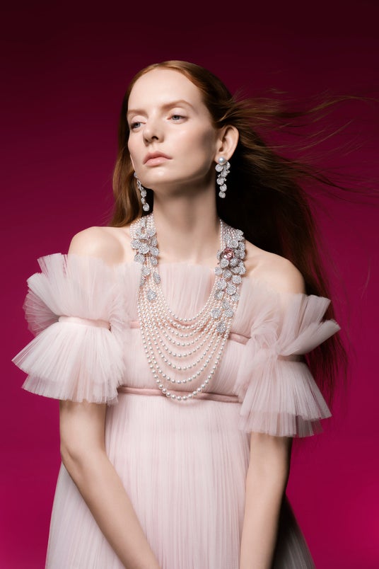 今年7月、パリ・オートクチュール・コレクションにて発表した新作ハイジュエリーコレクション「Les Petales(レ ペタル)」。風に舞うバラの花びらが映し出す一瞬の美しさを描いた本コレクションを、2025年9月26日(金)から10月13日(月・祝)までの期間、ミキモト銀座4丁目本店の7階ミキモトホールにて一般公開します。