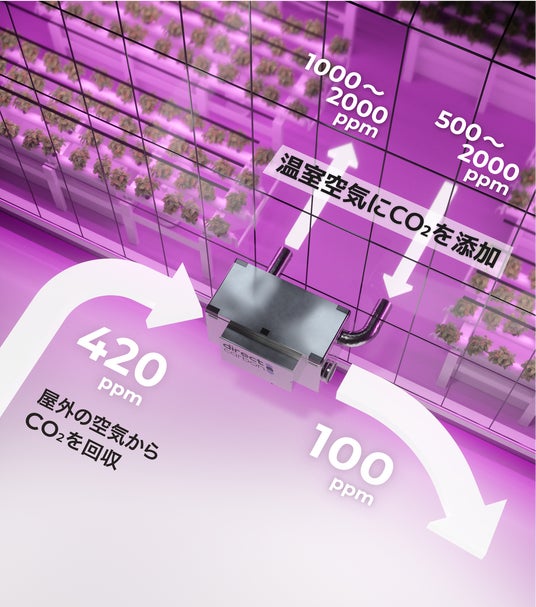 空気から直接CO2を回収、施設園芸の収量アップと脱炭素化を両立