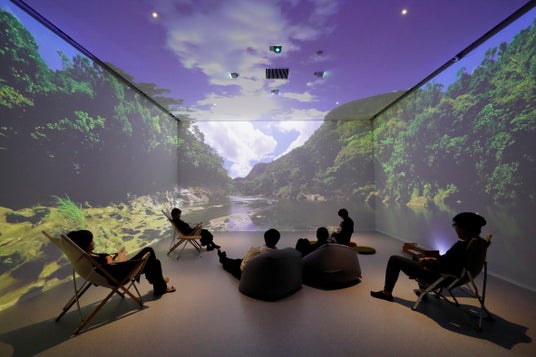 なお、この体験エリアでは、フォレストデジタル株式会社による世界初となるクラウドベース空間VR技術「デジタル森林浴(R)」を採用することにより、ゴーグルを必要としない没入型体験を実現しました。最先端のイマーシブ空間映像技術によるリアルな美しい自然風景をお楽しみください。