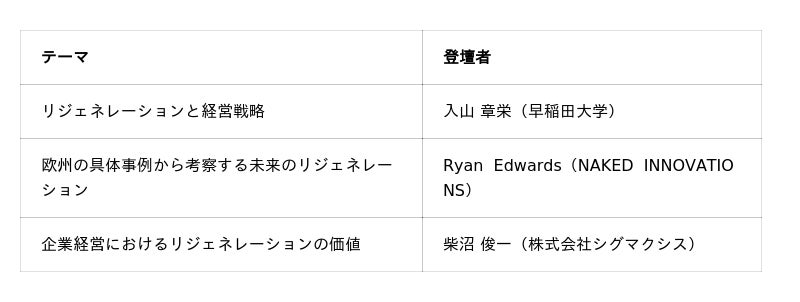 トークセッションリジェネラティブな社会を実現する上で共催者が注目している要素である「政治」「環境」「人間性」「社会」「文化」「経済」の6分野から、企業、研究者、文化人、メディア、イノベーター、エコシステムビルダーなど多様な登壇者が集結します。食、文化、デザイン、スポーツ、企業経営、森林、地域といった幅広いテーマを横断し、多角的な視点から議論を深め、リジェネラティブな社会の実現に向けた道筋を探ります。