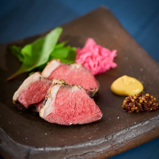 英国産ビーフの上質なハラミを丁寧に焼き上げ、赤身ならではの深いうまみとジューシーな食感を引き出しています。仕上げにコクのある赤ワインソースを添えることで、肉のうまみが一層引き立ち、上品な味わいに。芳醇な香りと濃厚なソースのマリアージュは必食。【ディナー限定】