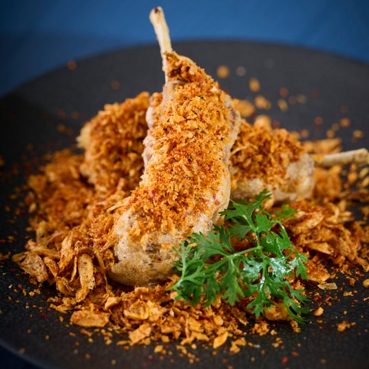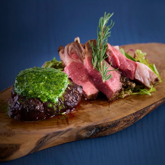 英国産ラムのチャンブ アントリムド(ランプ)と、スペアリブ、2種類の部位を炭火焼きで仕上げ、クセがない英国産ラムを食べ比べられる欲張りなメニュー。ガーリックとハーブを効かせたブルギニョンバターと共にお楽しみください。【ディナー限定】