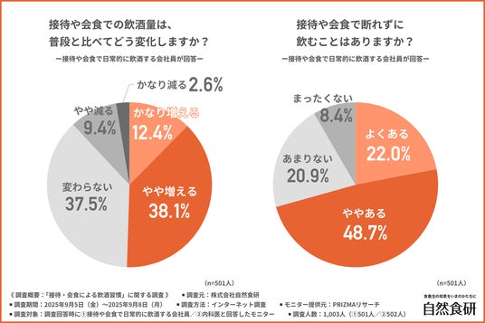 そこで今回、株式会社自然食研(https://www.sizenshokken.co.jp/)は、1.接待や会食で日常的に飲酒する会社員/2.内科医を対象に、「接待・会食による飲酒習慣」に関する調査を行いました。
