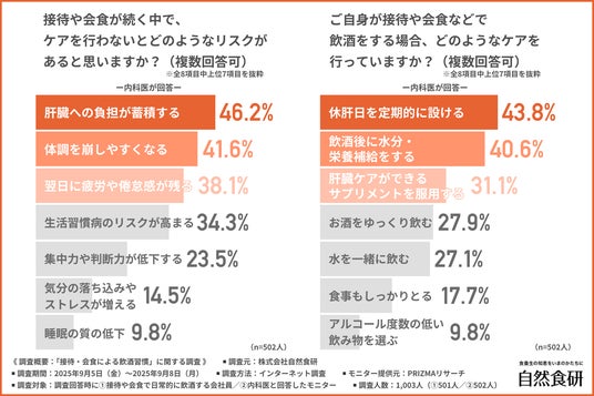 さらに、接待や会食による連日の飲酒が肝臓に与える影響については、内科医の約9割が「負担になる」と回答し、ケアを行わないことでの「肝臓への負担の蓄積」リスクが最も懸念されていました。
