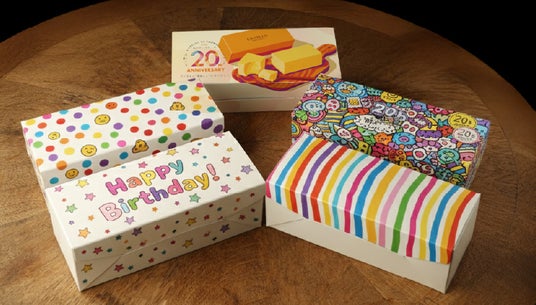 白い箱に、絵を描いたり色を塗ったり、自由にデコレーションして「幻のチーズケーキ20周年」を一緒にお祝いしてください!