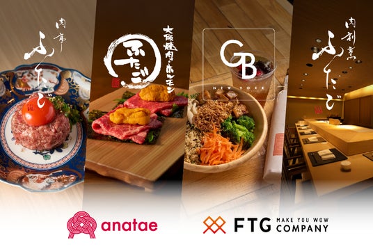 体験ギフト・マーケットプレイス「anatae(あなたへ)」を運営するANATAE株式会社(本社:東京都目黒区、代表取締役社長:堀田 栄利康、以下ANATAE)は、「大阪焼肉・ホルモンふたご」「肉亭ふたご iki」「GREEN BROTHERS」などを展開する株式会社FTG Company(本社:東京都目黒区、代表取締役社長:森川 誠、以下FTG Company)と提携し、同社複数ブランドの体験ギフト掲載を開始しました。