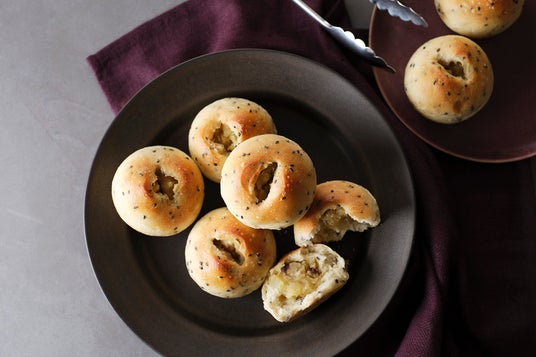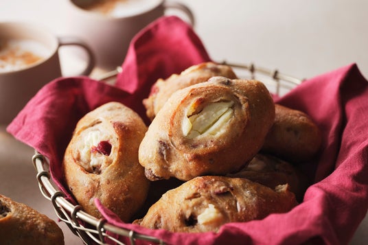 特長:香ばしいライ麦全粒粉を配合した生地に、自然な甘みが凝縮されたレーズンやイチジク、甘酸っぱいクランベリーなど5種類の厳選素材を生地にたっぷり練り込みました。仕上げにクリームチーズを包むことで全体の味わいにコクとまろやかさをアップ。ベース生地には砂糖を使用せず、ドライフルーツの甘みを生かしています。秋のティータイムはもちろん、ワインとの相性も良く、贈り物にも最適な一品です。