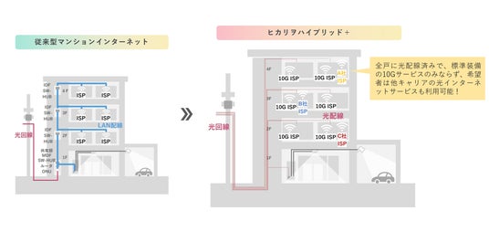 そして今回、新サービスの「ヒカリヲハイブリッド+(プラス)」では、高速インターネットを標準採用し、既存の「ヒカリヲ」サービスと組み合わせることで「無料で高速インターネットを利用できる」かつ「他社の光回線も自由に選べる※4」住環境を提供。これにより、入居者様は即時利用可能な高速回線と自由な選択肢の両方を享受できる、通信の自由度が最大化された住環境が実現します。