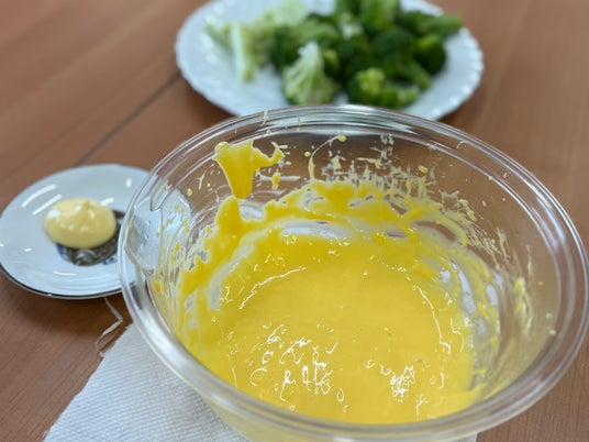 「ブロッコリーは苦手だったけど、自分で作ったマヨネーズと一緒なら食べられた!」といううれしい声や、「みんなで作ると楽しいし、もっとおいしく感じる!」と笑顔が見られ、お皿に山盛りだったブロッコリーがきれいになくなっていきました。
